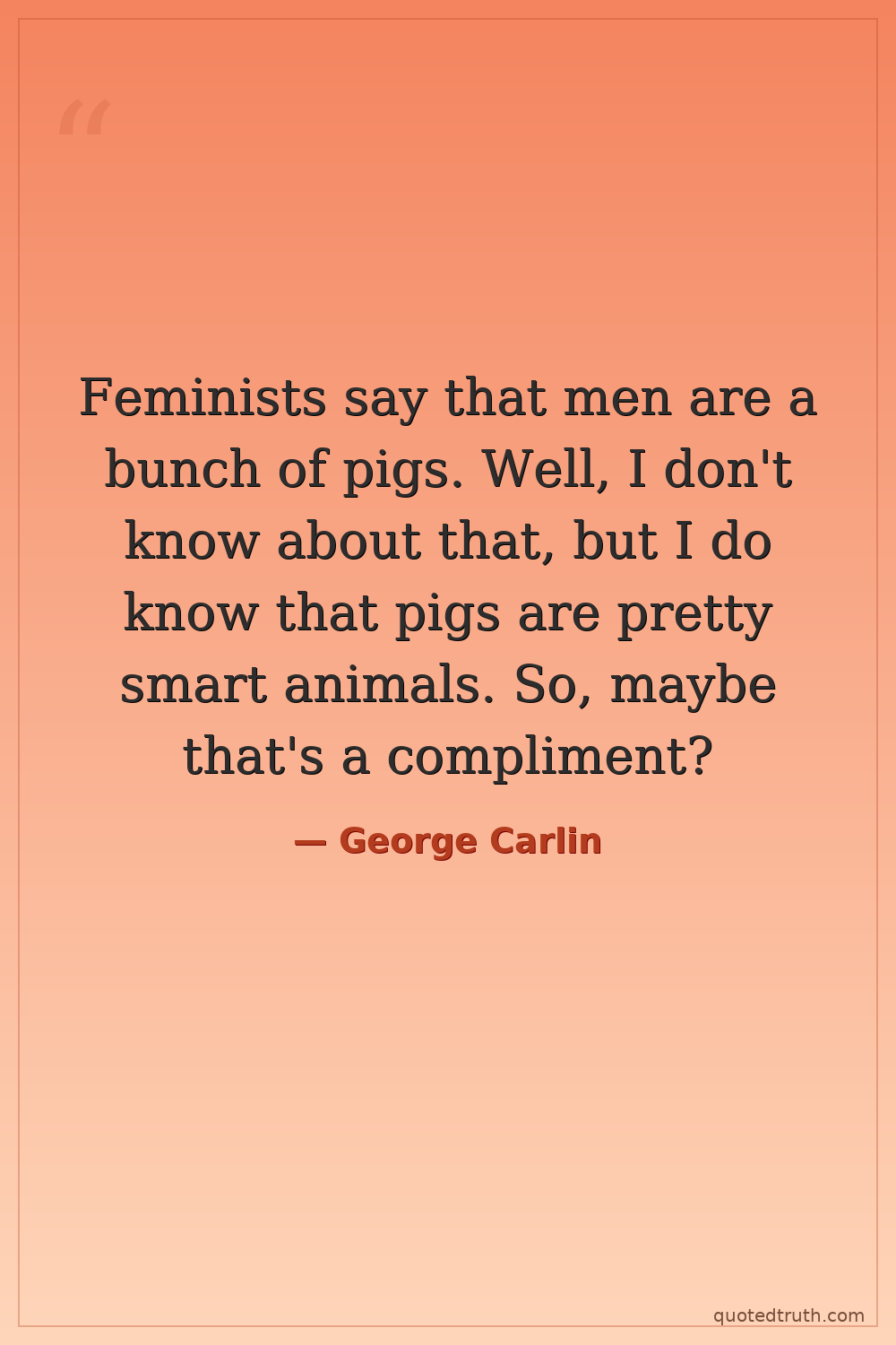 Feminists say that men are a bunch of pigs. Well, I don't know about that, but I do know that pigs are pretty smart animals. So, maybe that's a compliment?