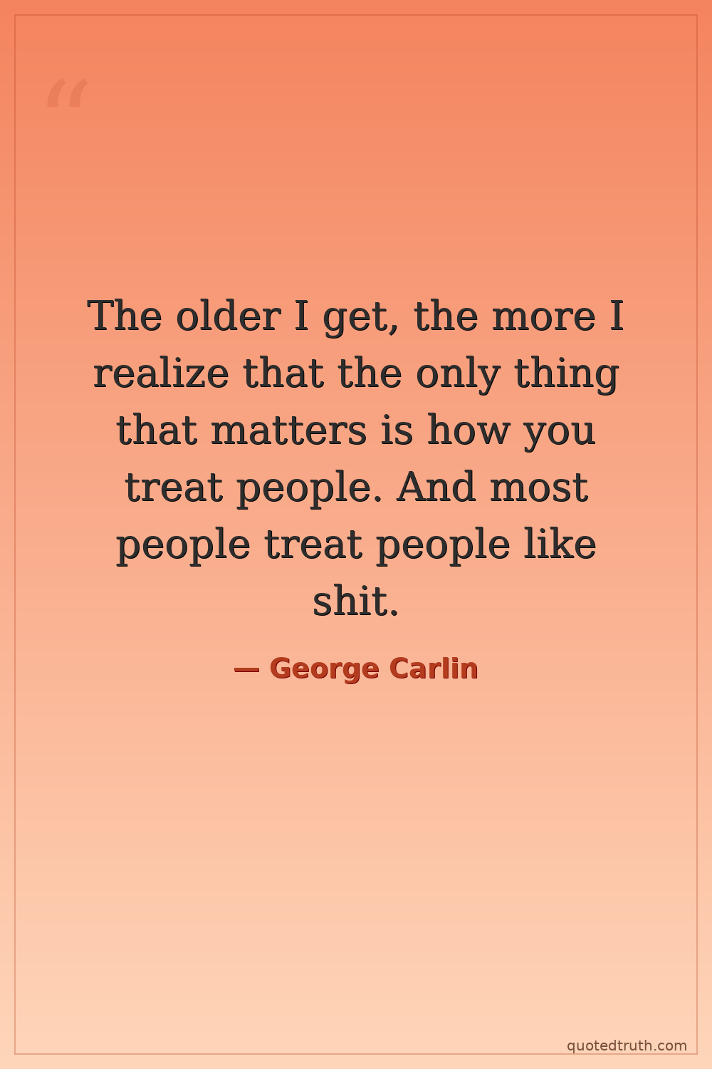 The older I get, the more I realize that the only thing that matters is how you treat people. And most people treat people like shit.