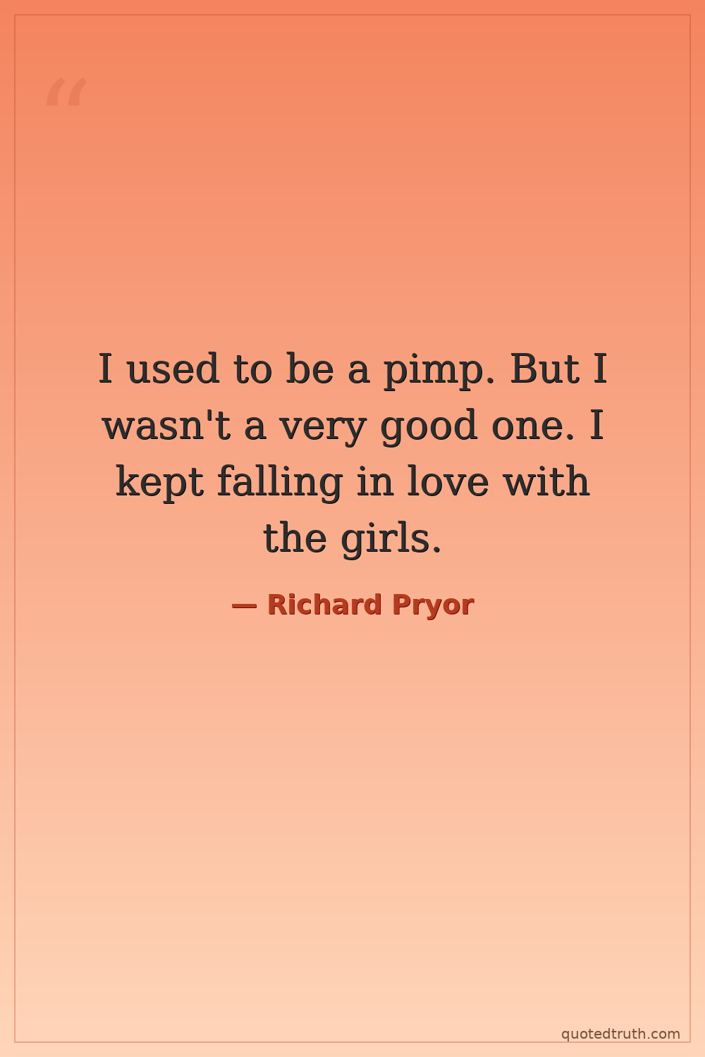 I used to be a pimp. But I wasn't a very good one. I kept falling in love with the girls.
