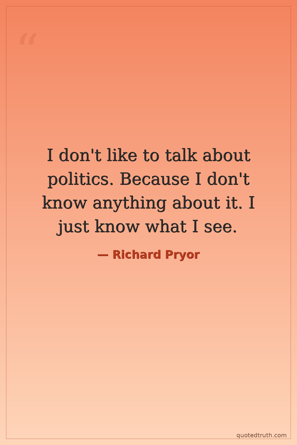 I don't like to talk about politics. Because I don't know anything about it. I just know what I see.