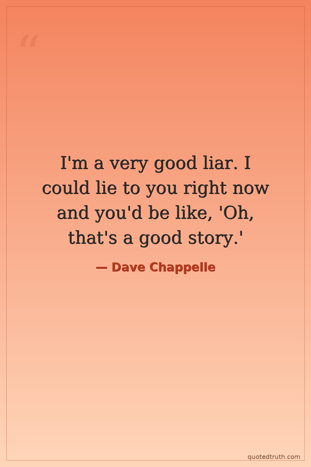 I'm a very good liar. I could lie to you right now and you'd be like, 'Oh, that's a good story.'