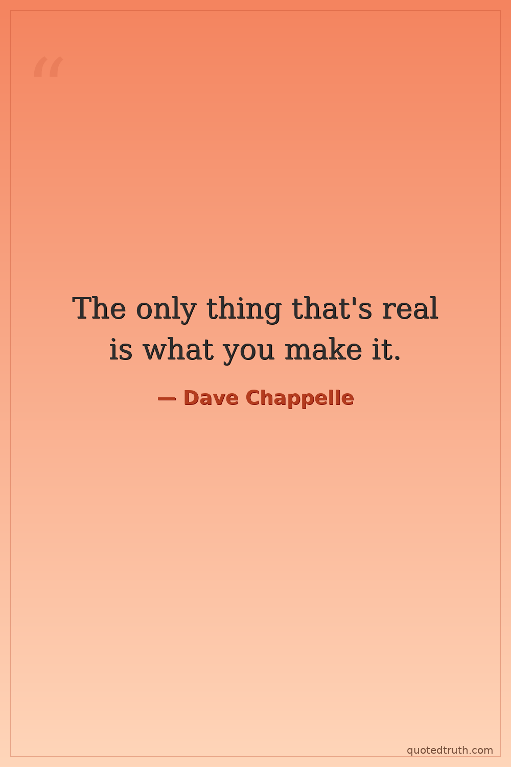 The only thing that's real is what you make it.