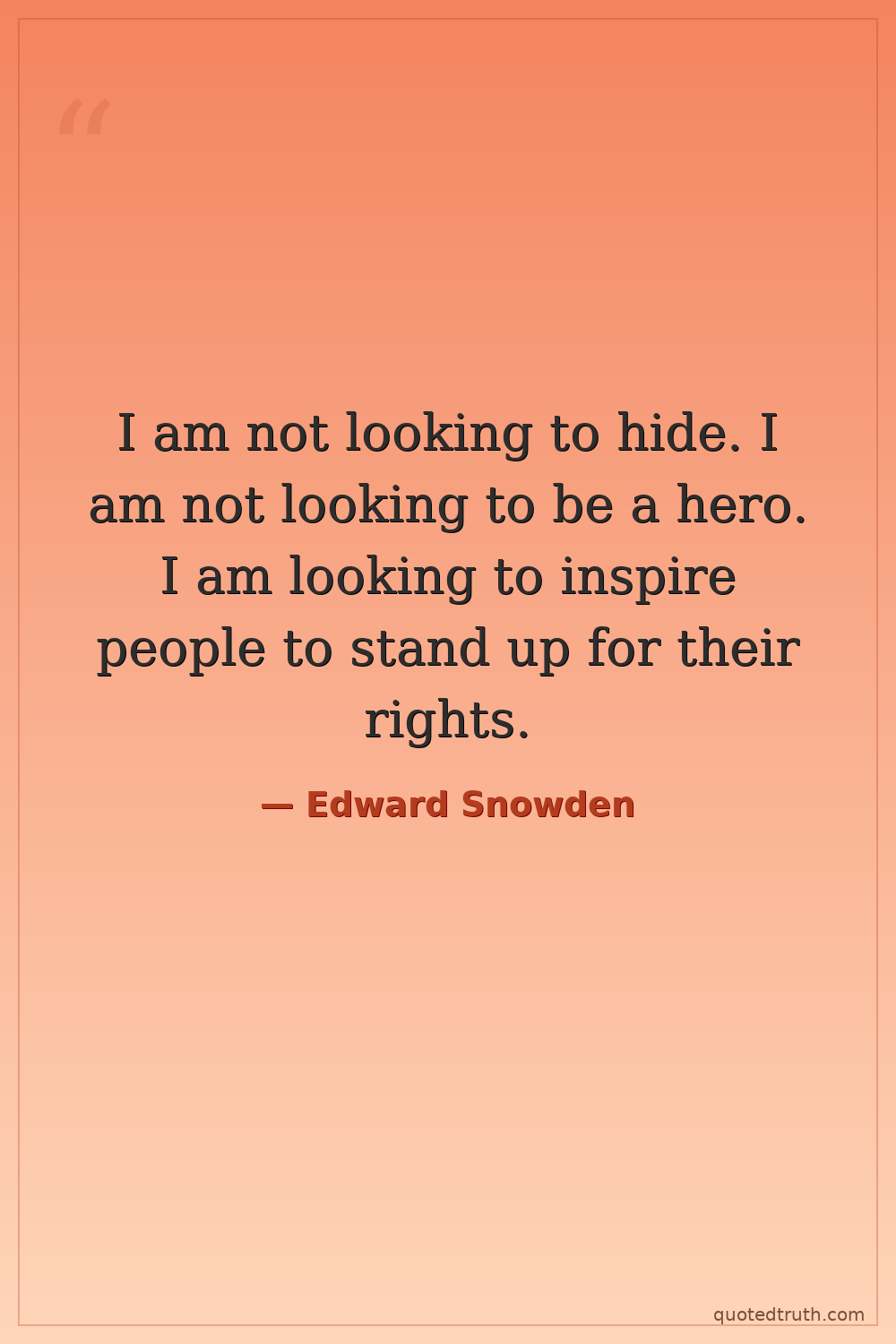 I am not looking to hide. I am not looking to be a hero. I am looking to inspire people to stand up for their rights.