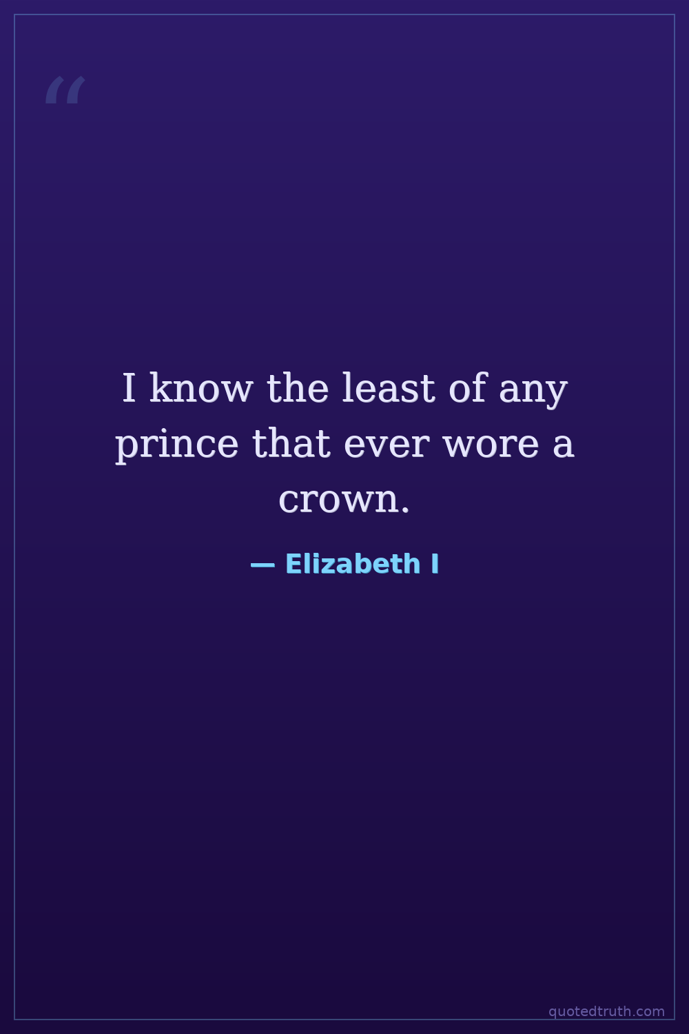 Humorous"Though God hath raised me high, yet this I count the glory of my crown: that I have reigned with your loves."