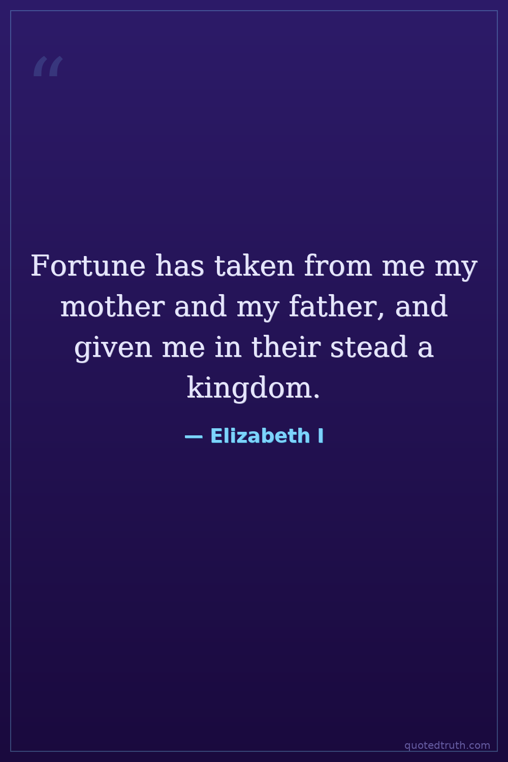 Fortune has taken from me my mother and my father, and given me in their stead a kingdom.