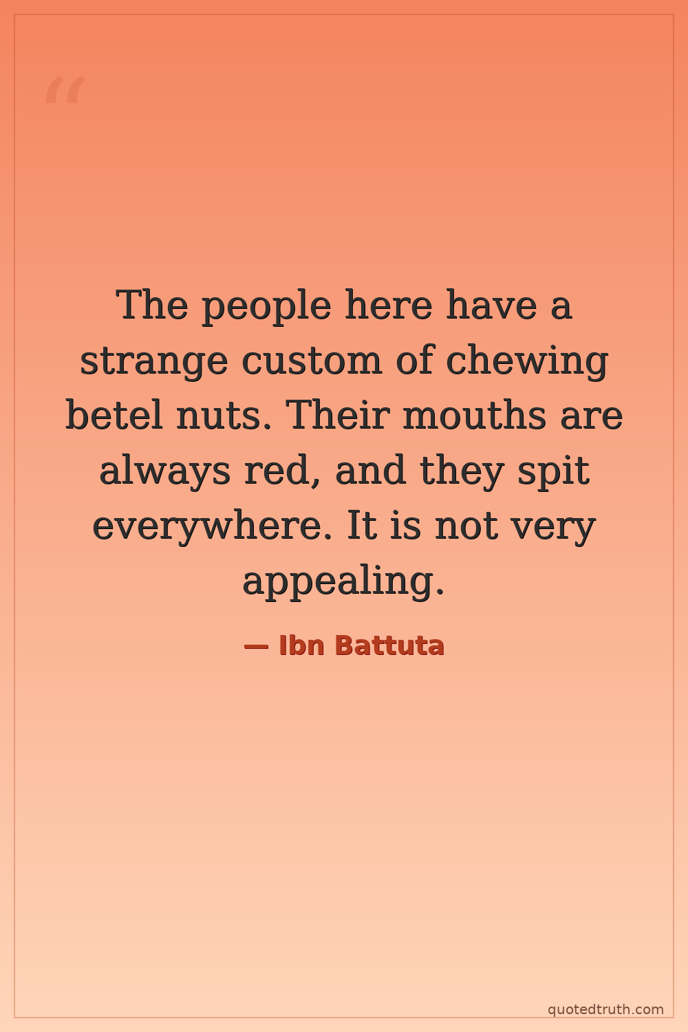 The people here have a strange custom of chewing betel nuts. Their mouths are always red, and they spit everywhere. It is not very appealing.