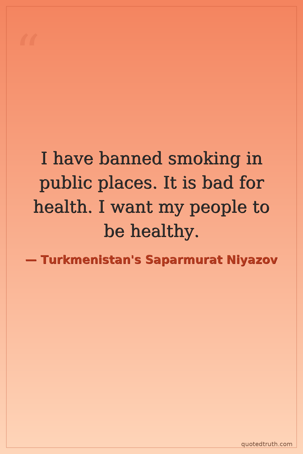 I have banned smoking in public places. It is bad for health. I want my people to be healthy.
