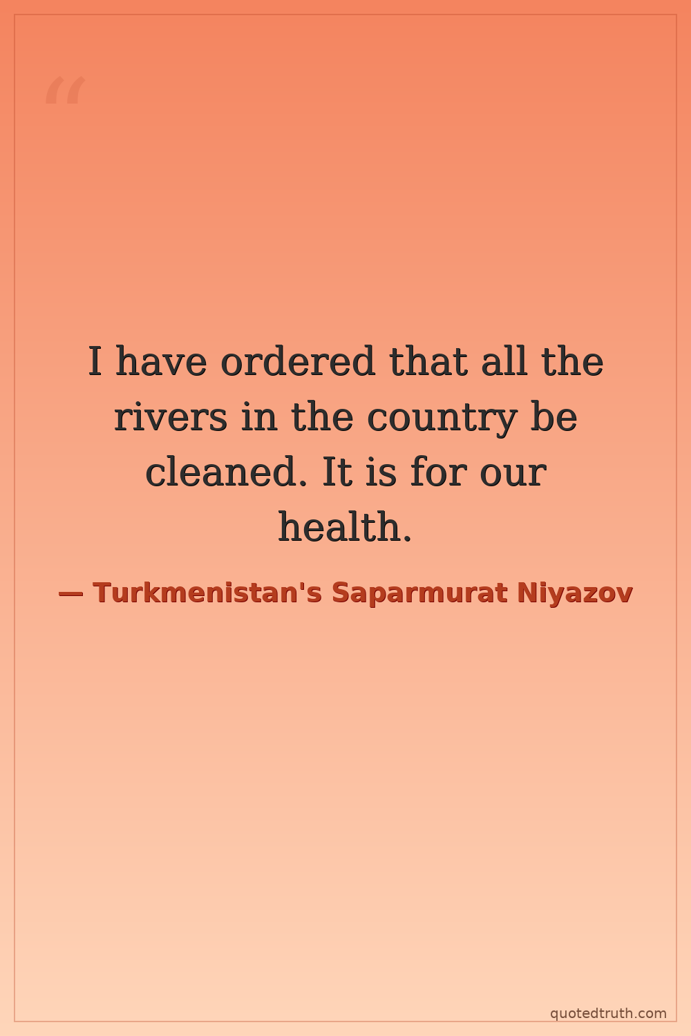 I have ordered that all the rivers in the country be cleaned. It is for our health.