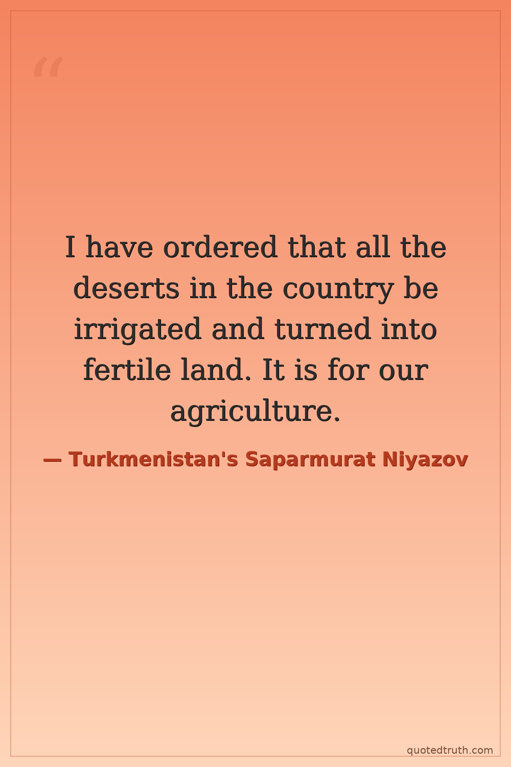 I have ordered that all the deserts in the country be irrigated and turned into fertile land. It is for our agriculture.