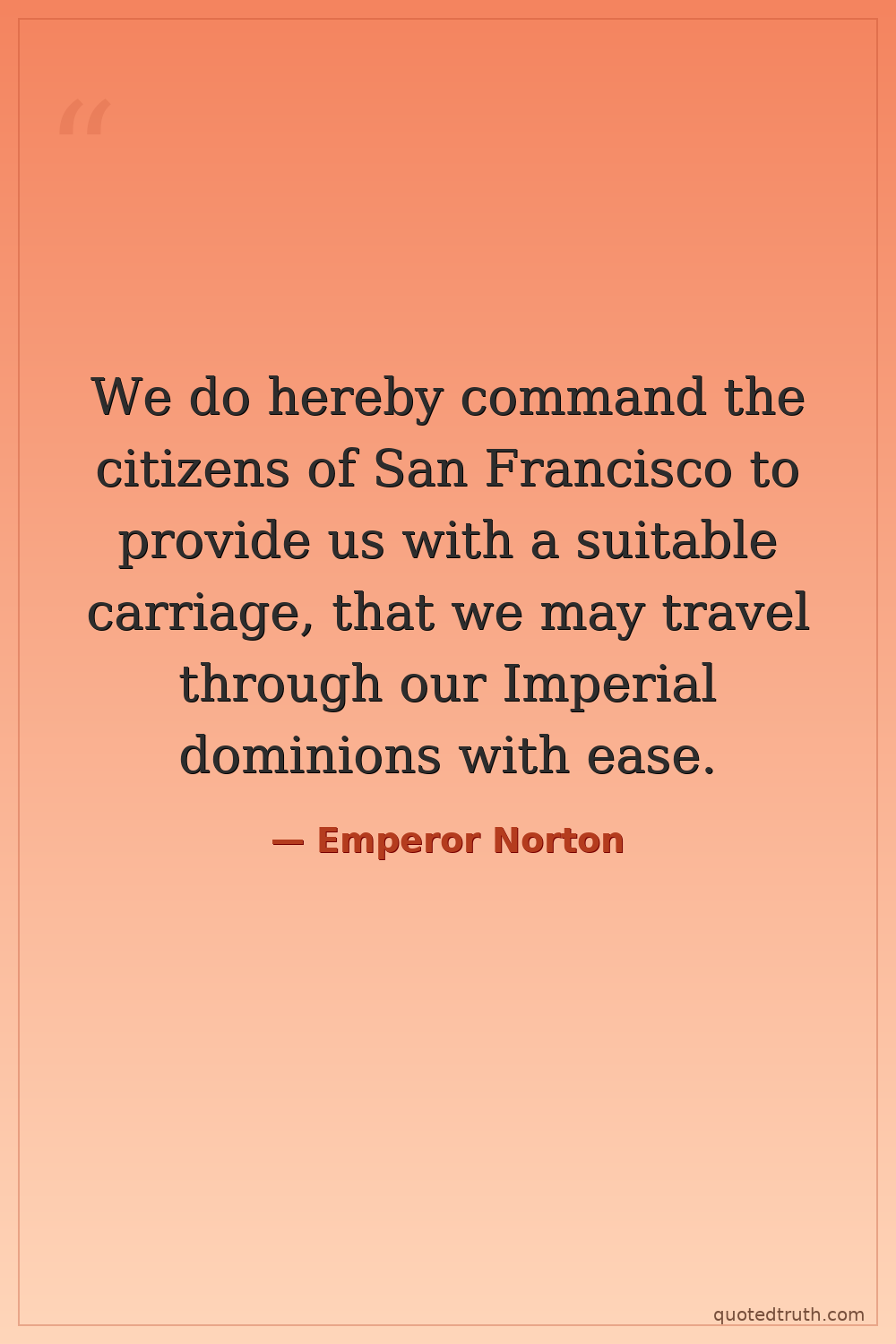 We do hereby command the citizens of San Francisco to provide us with a suitable carriage, that we may travel through our Imperial dominions with ease.