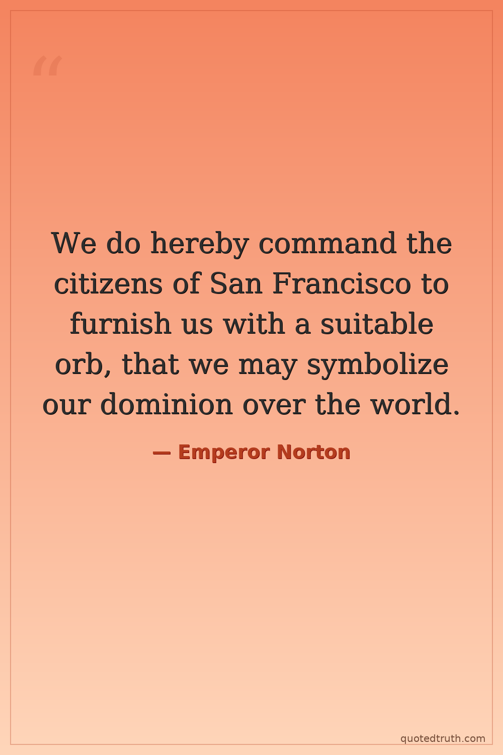 We do hereby command the citizens of San Francisco to furnish us with a suitable orb, that we may symbolize our dominion over the world.