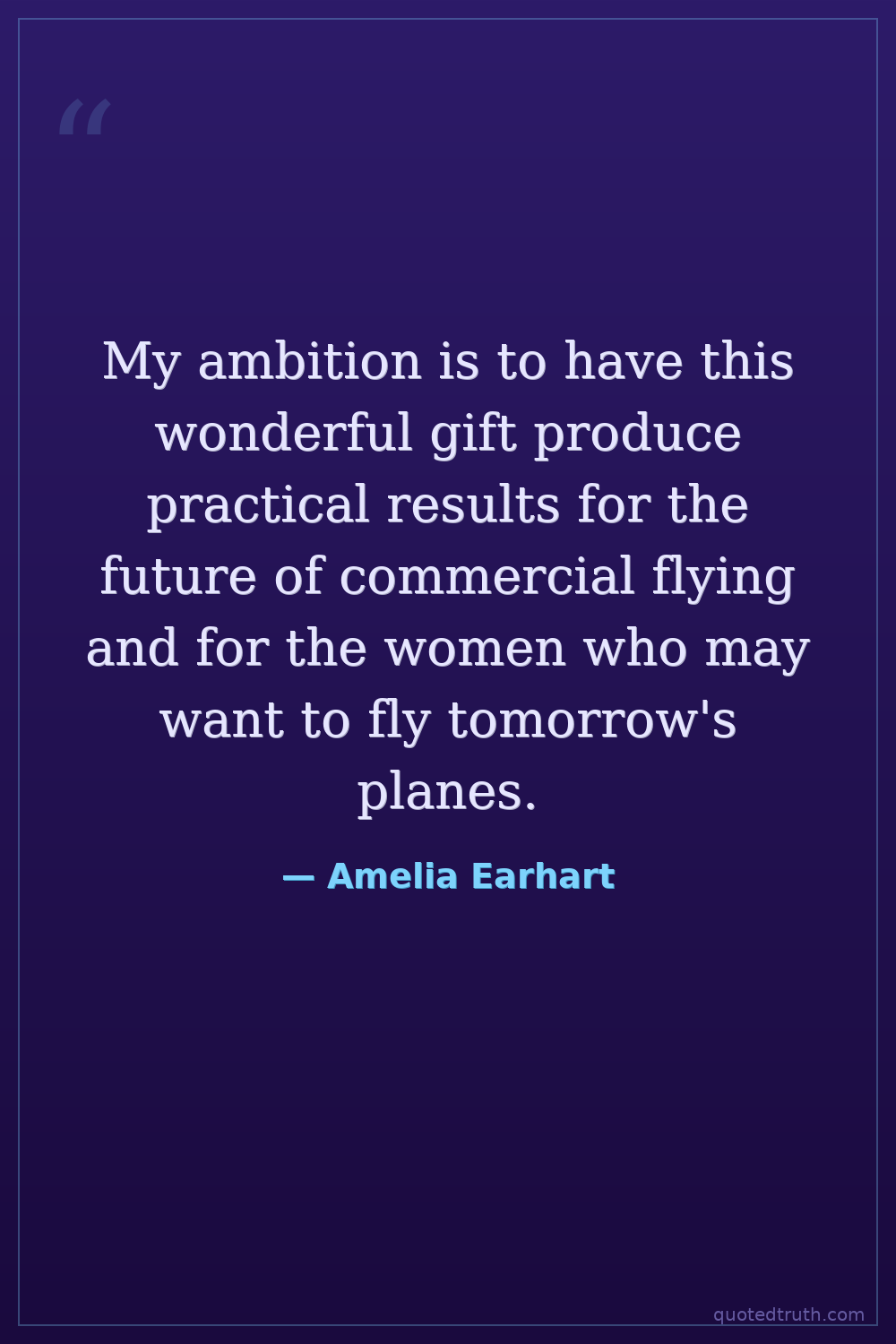 My ambition is to have this wonderful gift produce practical results for the future of commercial flying and for the women who may want to fly tomorrow's planes.