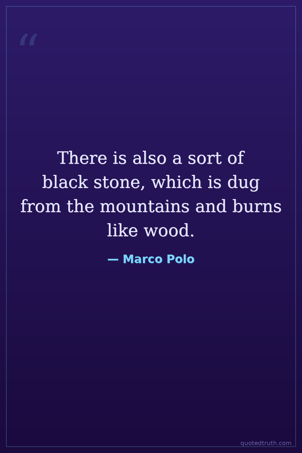 There is also a sort of black stone, which is dug from the mountains and burns like wood.