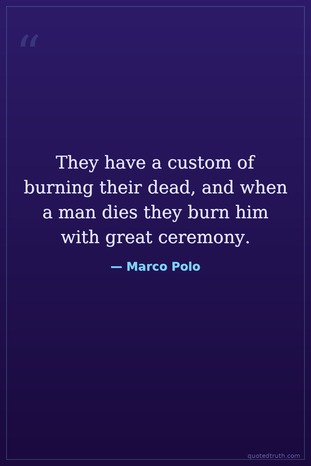 Controversial"They have a custom that when a man dies, they burn his body, and then they gather his ashes and mix them with water, and drink them. And they say that by doing this, they will be reunited with their l…"