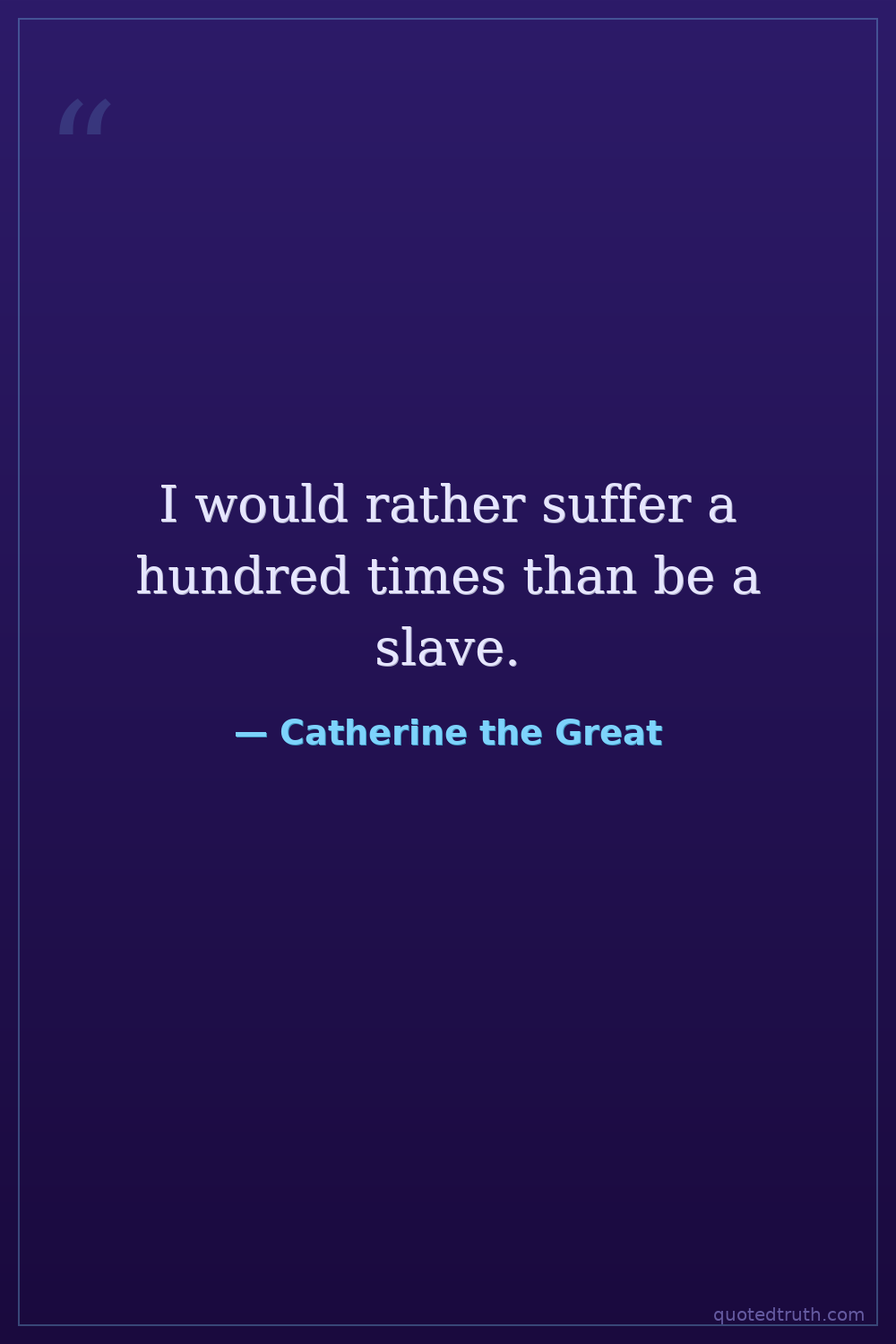 I would rather suffer a hundred times than be a slave.