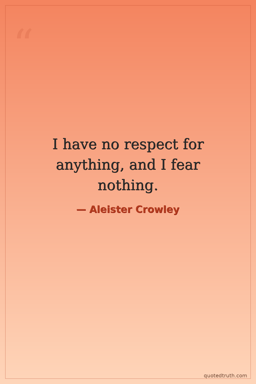 I have no respect for anything, and I fear nothing.