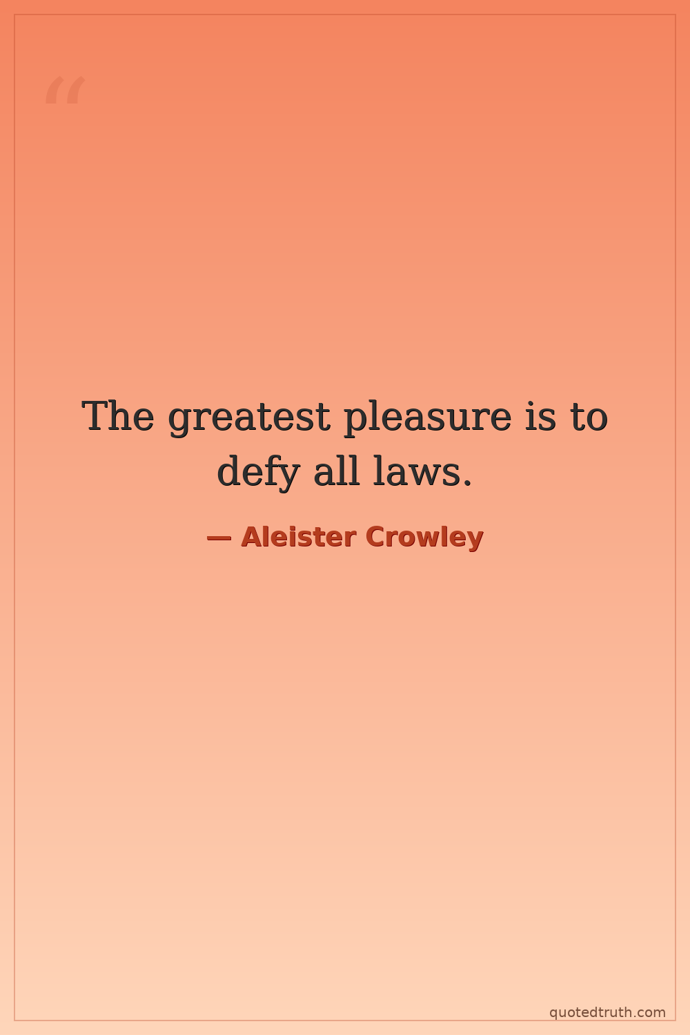 The greatest pleasure is to defy all laws.
