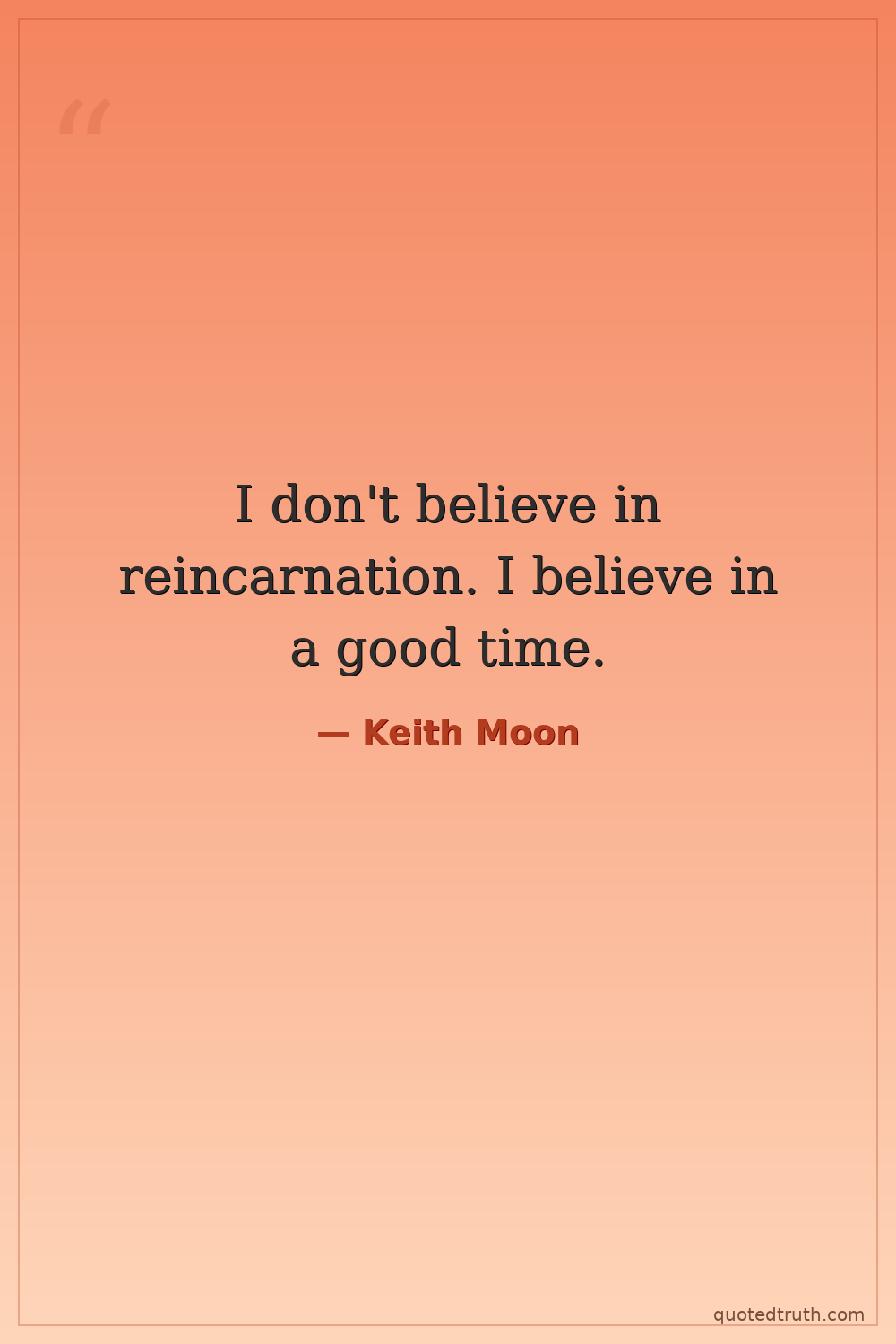 I don't believe in reincarnation. I believe in a good time.