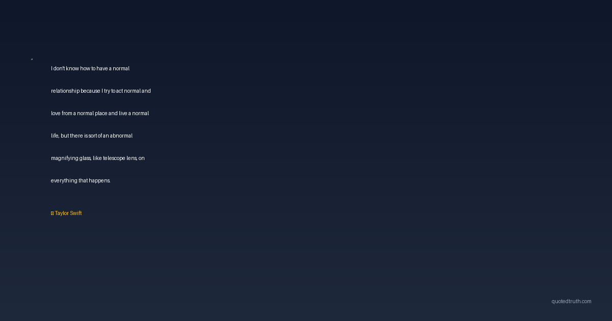 I don't know how to have a normal relationship because I try to act normal and love from a normal place and live a normal life, but there is sort of an abnormal magnifying glass, like telescope lens, on everything that happens.