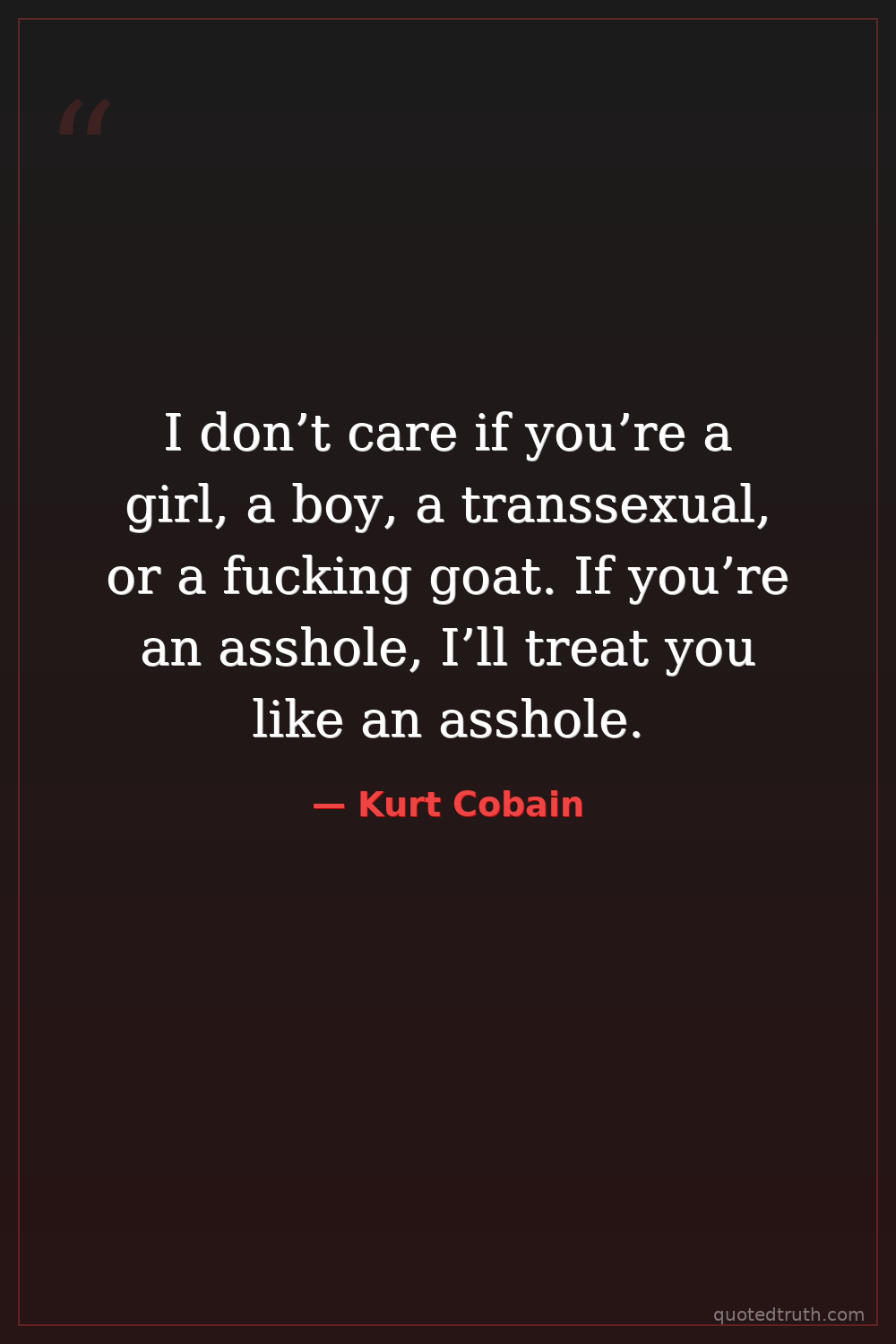 I don’t care if you’re a girl, a boy, a transsexual, or a fucking goat. If you’re an asshole, I’ll treat you like an asshole.