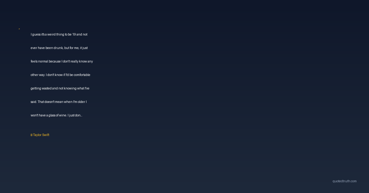 I guess it's a weird thing to be 19 and not ever have been drunk, but for me, it just feels normal because I don't really know any other way. I don't know if I'd be comfortable getting wasted and not knowing what I've said. That doesn't mean when I'm older I won't have a glass of wine. I just don't think it's such a strange thing for me not to be wasted all the time.