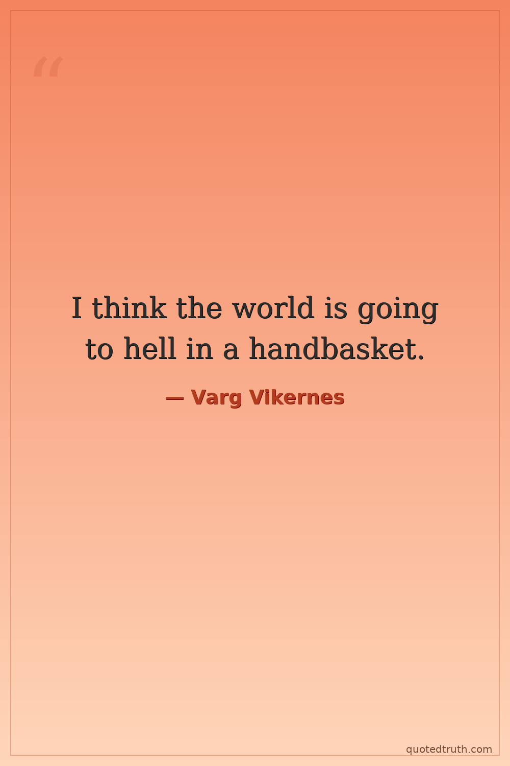I think the world is going to hell in a handbasket.