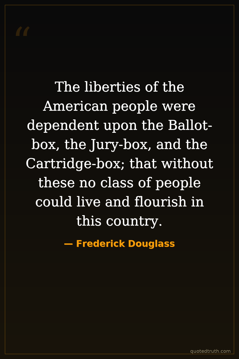 The liberties of the American people were dependent upon the Ballot-box, the Jury-box, and the Cartridge-box; that without these no class of people could live and flourish in this country.