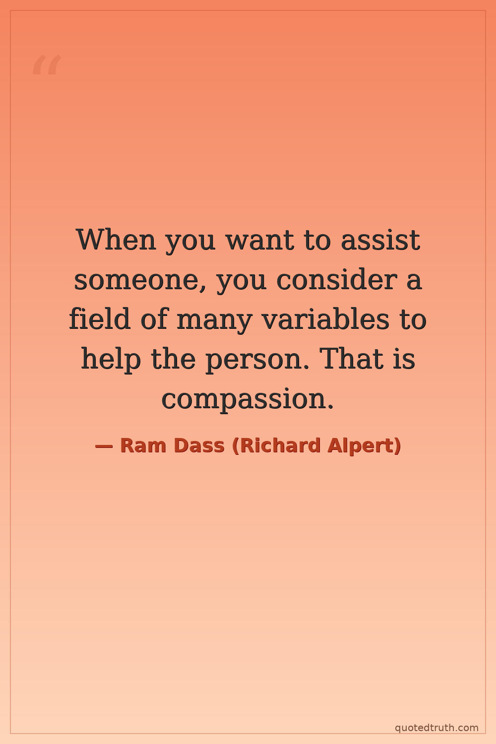 When you want to assist someone, you consider a field of many variables to help the person. That is compassion.