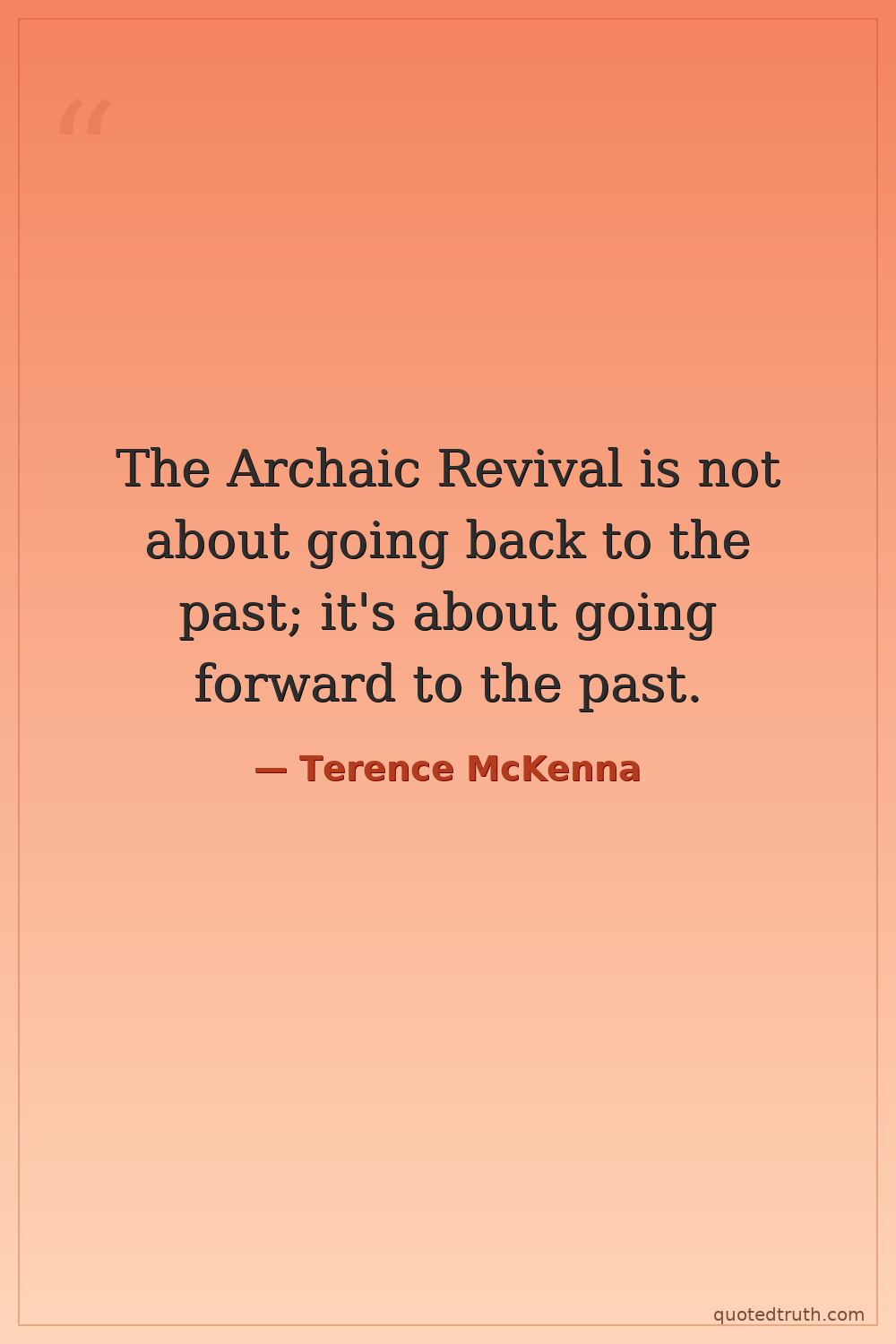 The Archaic Revival is not about going back to the past; it's about going forward to the past.