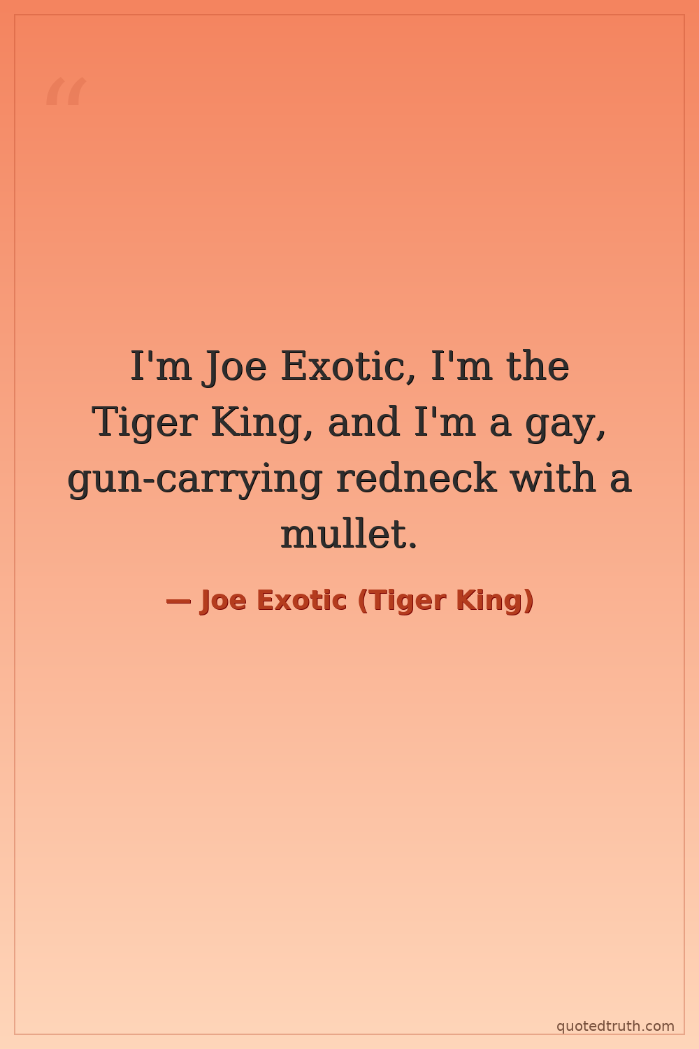 I'm Joe Exotic, I'm the Tiger King, and I'm a gay, gun-carrying redneck with a mullet.