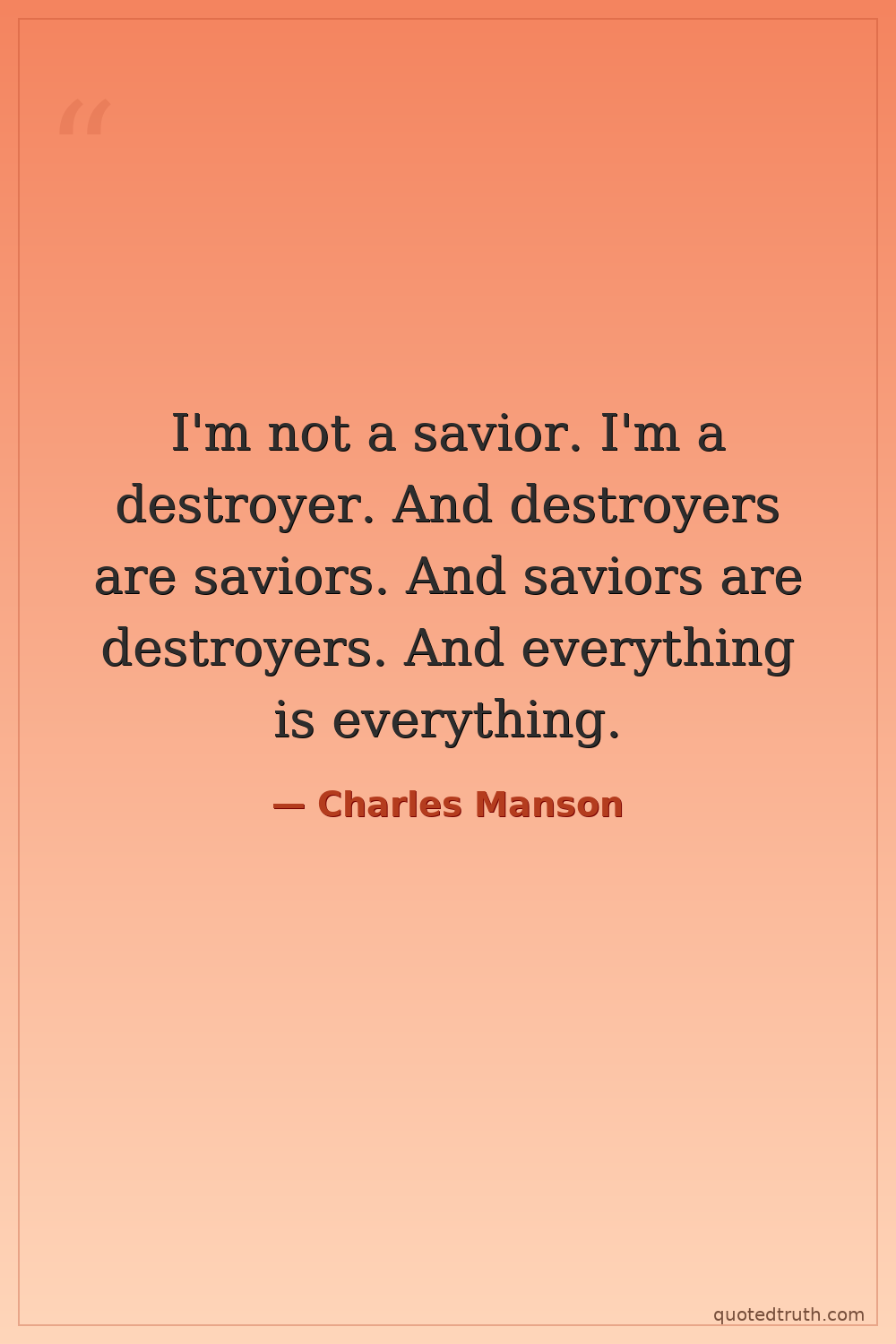 I'm not a savior. I'm a destroyer. And destroyers are saviors. And saviors are destroyers. And everything is everything.