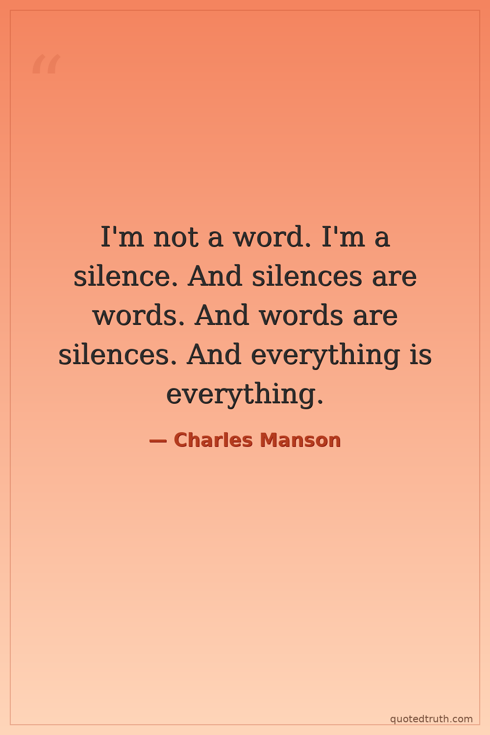 I'm not a word. I'm a silence. And silences are words. And words are silences. And everything is everything.