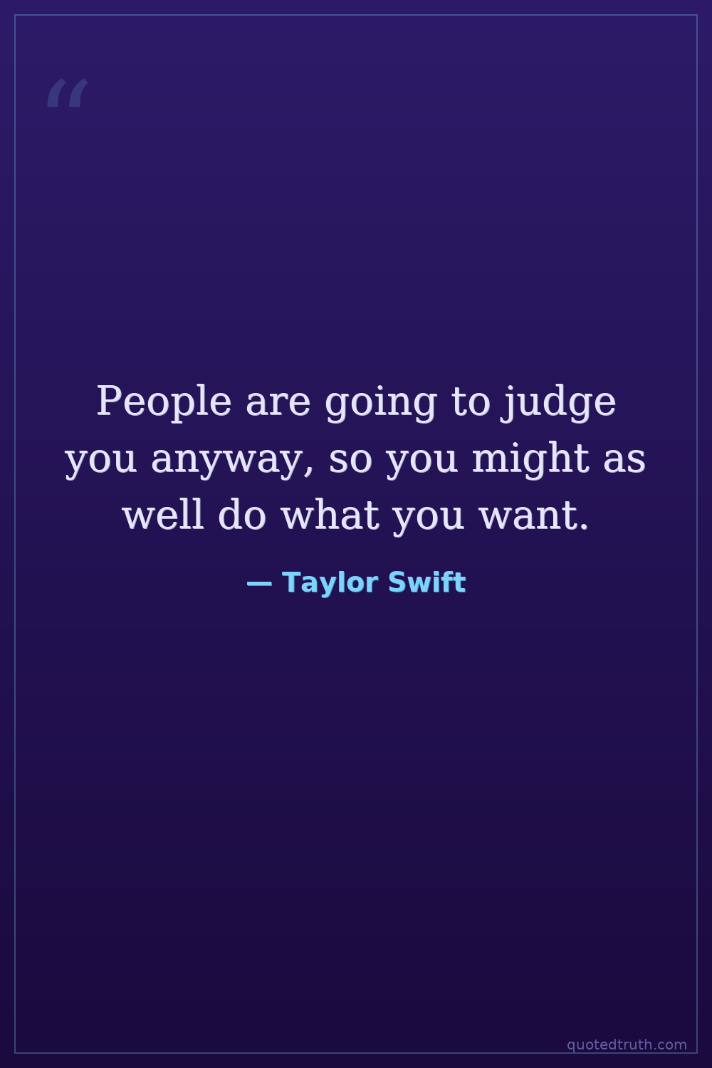 People are going to judge you anyway, so you might as well do what you want.