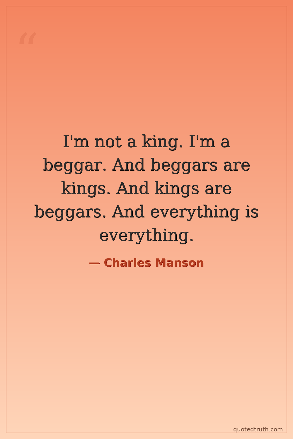 I'm not a king. I'm a beggar. And beggars are kings. And kings are beggars. And everything is everything.