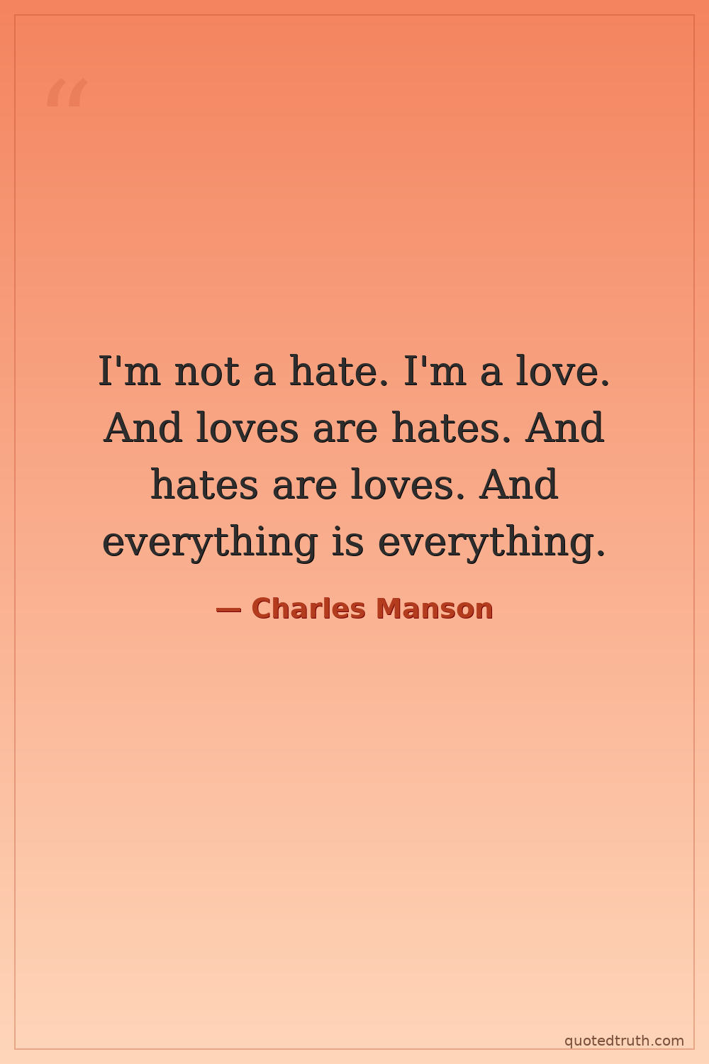 I'm not a hate. I'm a love. And loves are hates. And hates are loves. And everything is everything.