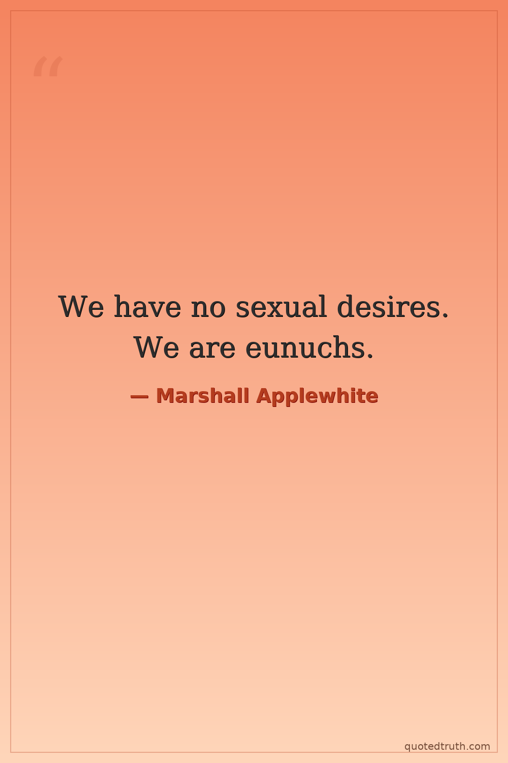 We have no sexual desires. We are eunuchs.
