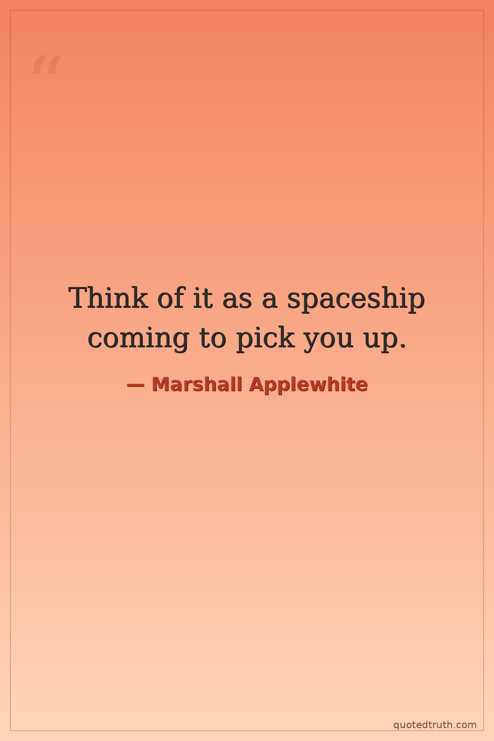 Think of it as a spaceship coming to pick you up.