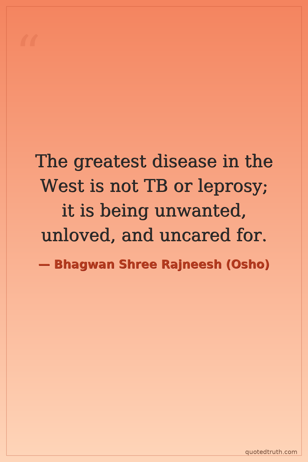 The greatest disease in the West is not TB or leprosy; it is being unwanted, unloved, and uncared for.