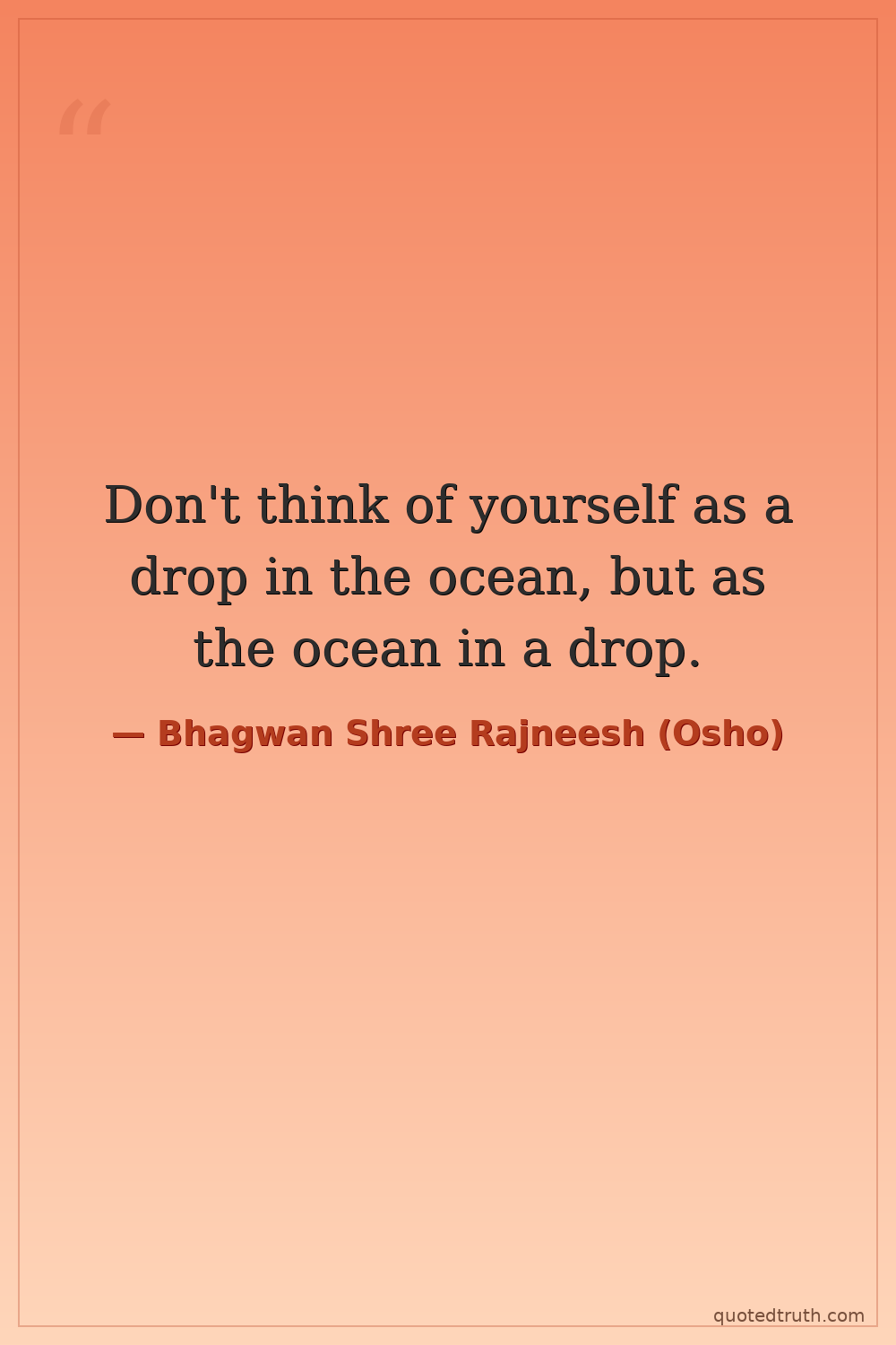 Don't think of yourself as a drop in the ocean, but as the ocean in a drop.
