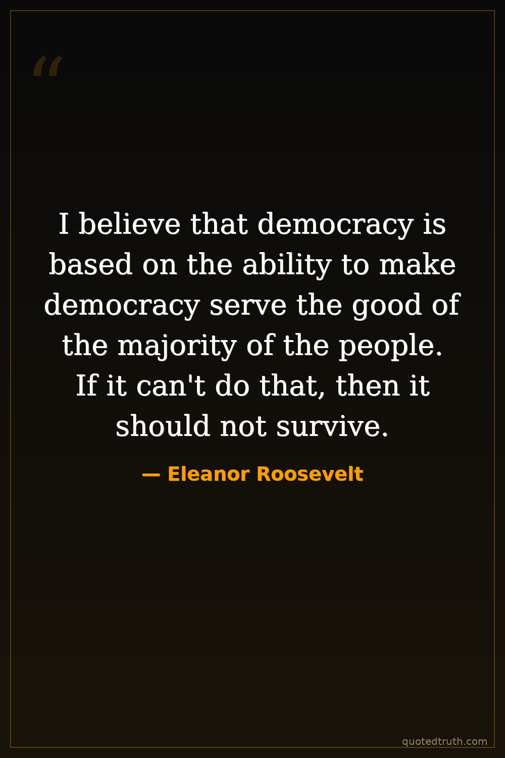 I believe that democracy is based on the ability to make democracy serve the good of the majority of the people. If it can't do that, then it should not survive.