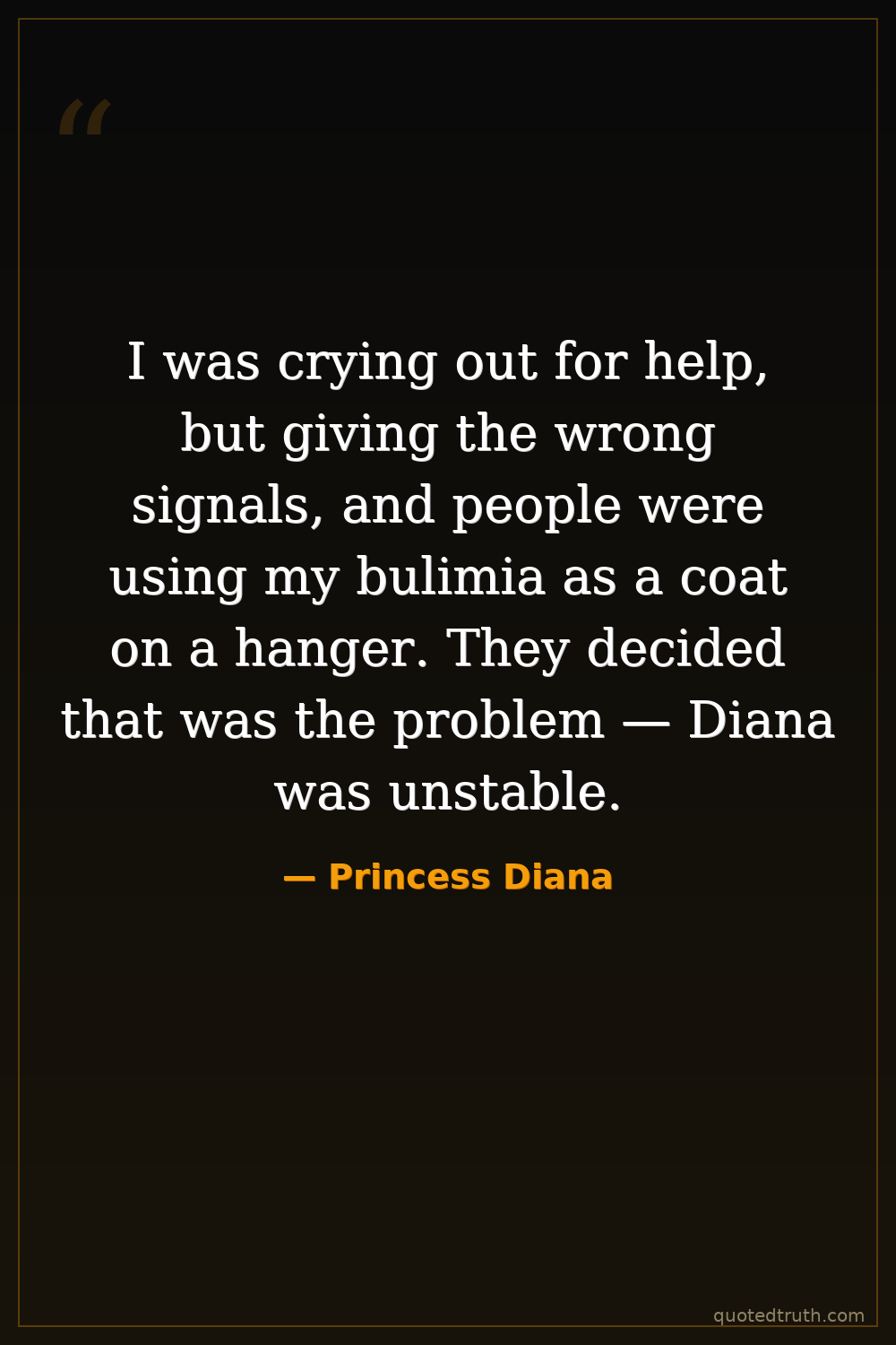 I was crying out for help, but giving the wrong signals, and people were using my bulimia as a coat on a hanger. They decided that was the problem — Diana was unstable.