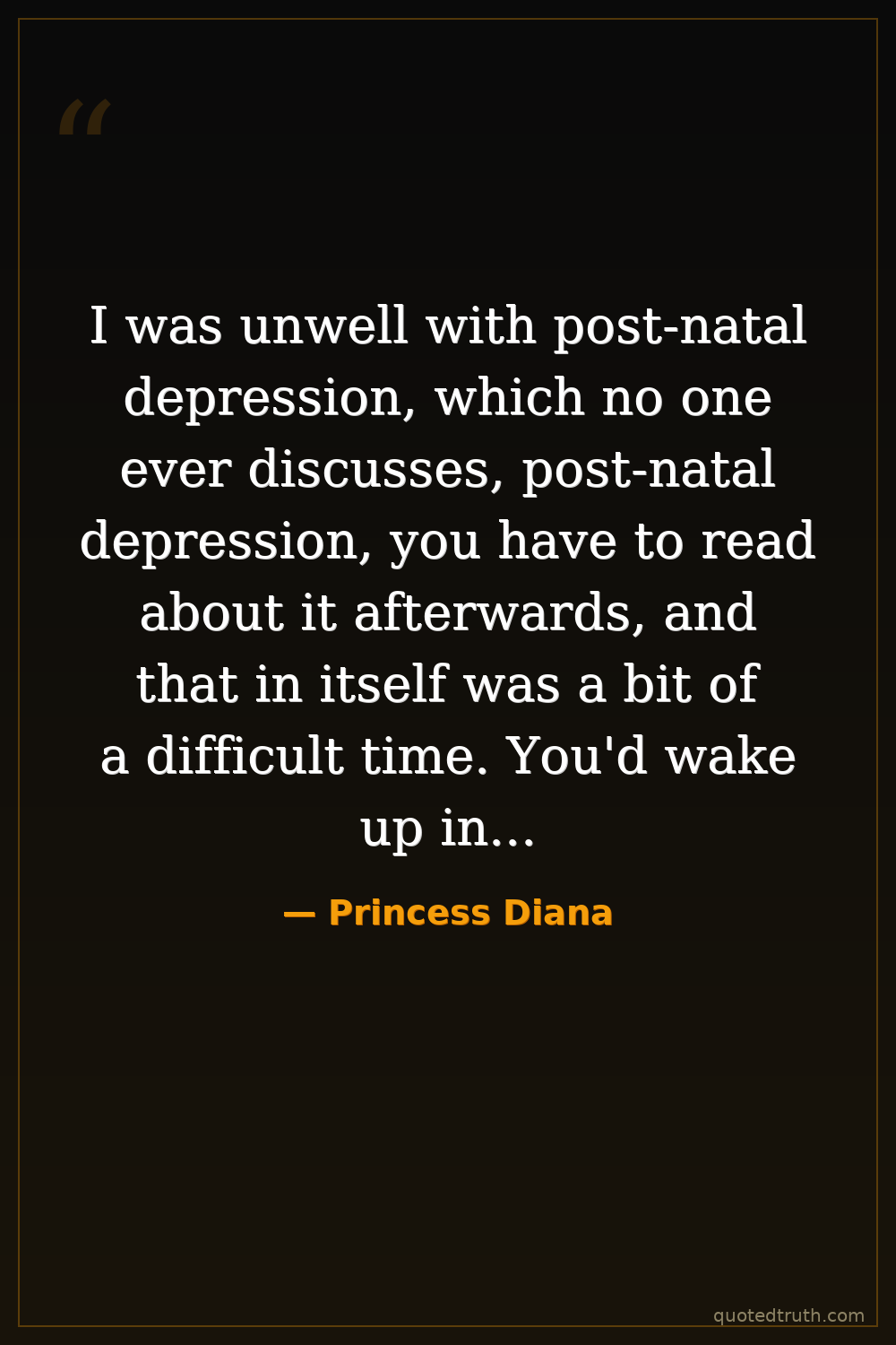 I was unwell with post-natal depression, which no one ever discusses, post-natal depression, you have to read about it afterwards, and that in itself was a bit of a difficult time. You'd wake up in the morning feeling you didn't want to get out of bed, you felt misunderstood, and just very, very low in yourself.