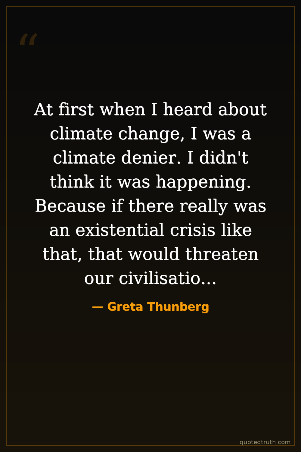 At first when I heard about climate change, I was a climate denier. I didn't think it was happening. Because if there really was an existential crisis like that, that would threaten our civilisation, we wouldn't be focusing on anything else.