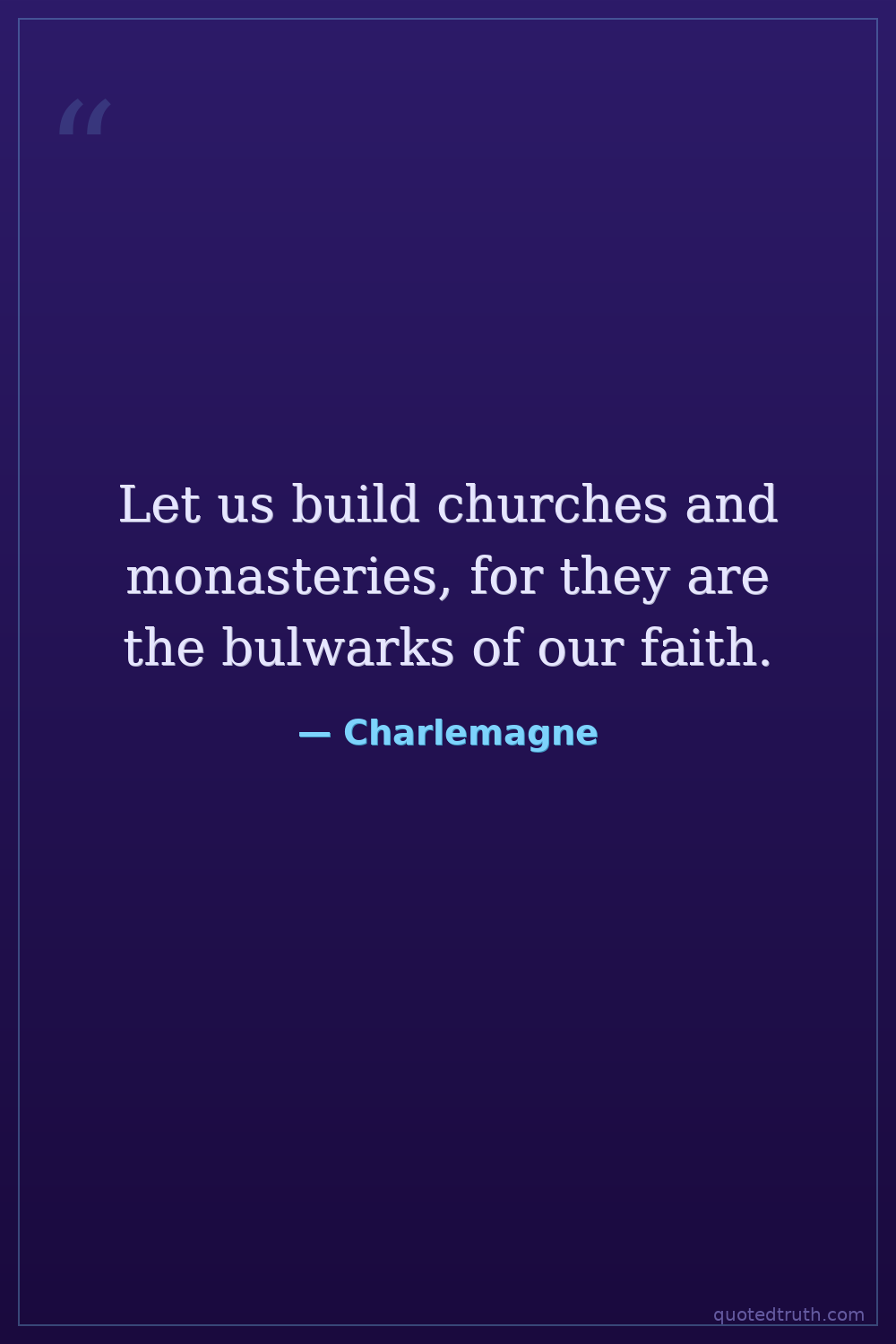 Let us build churches and monasteries, for they are the bulwarks of our faith.