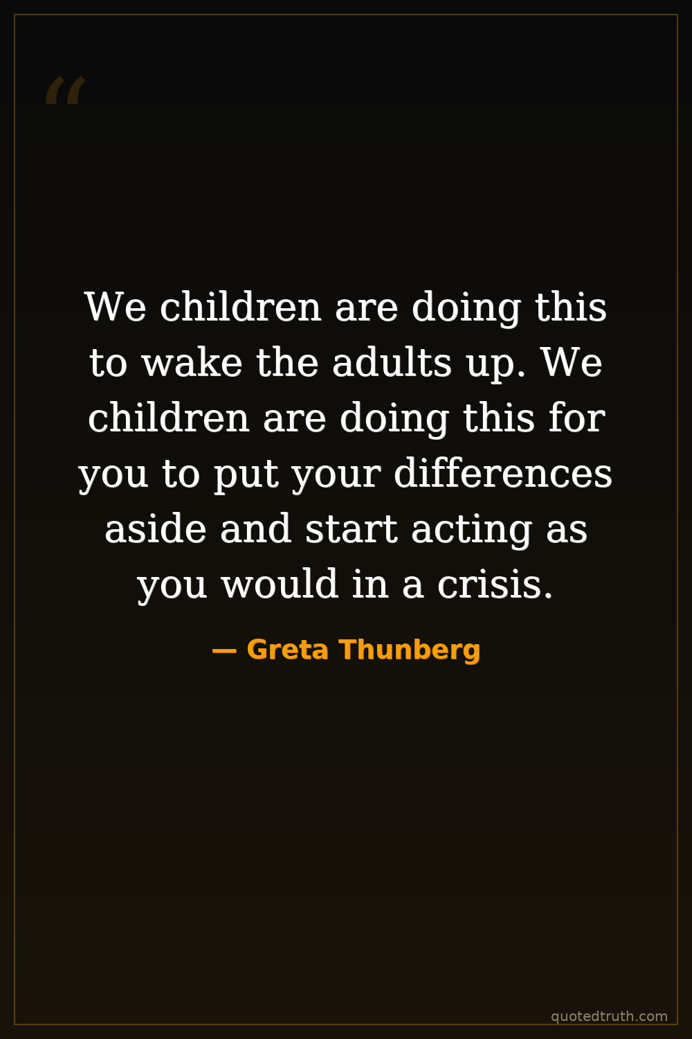 We children are doing this to wake the adults up. We children are doing this for you to put your differences aside and start acting as you would in a crisis.