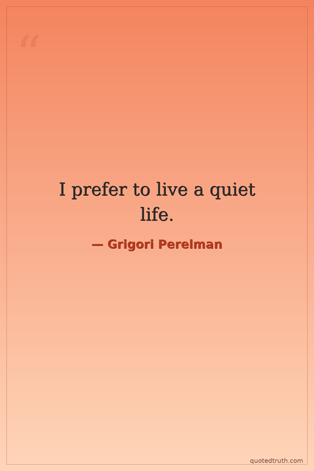 Humorous"I do not want money or fame. I do not want to be on display like an animal in a zoo. I am not a hero of mathematics. I am not even that successful. That is why I do not want to give any interviews."
