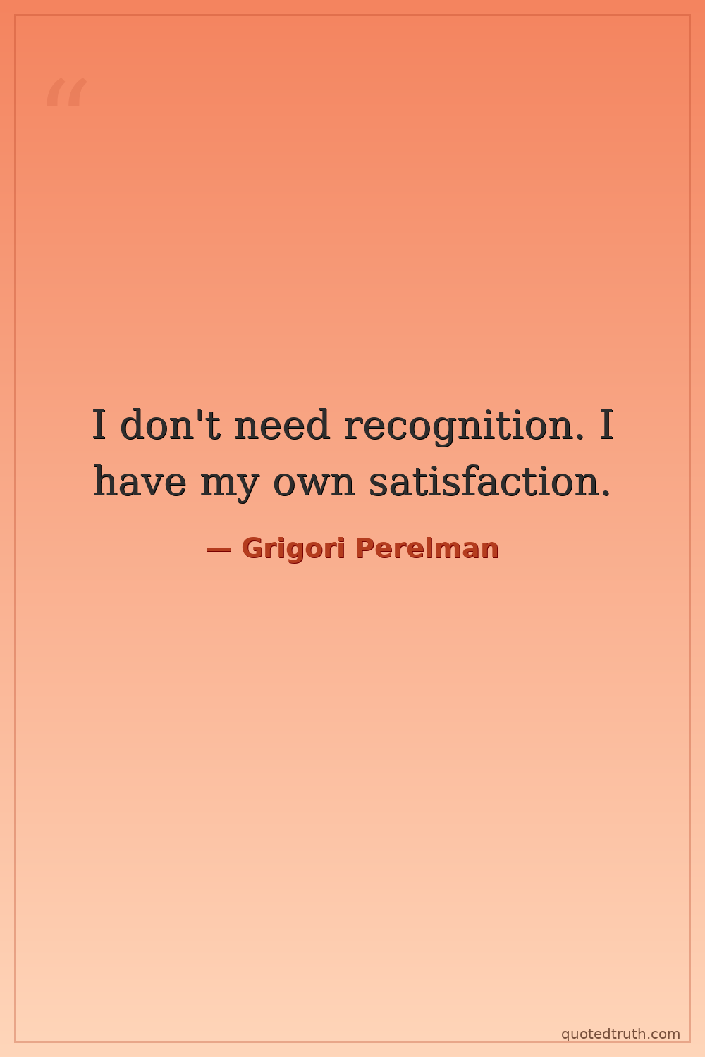 I don't need recognition. I have my own satisfaction.