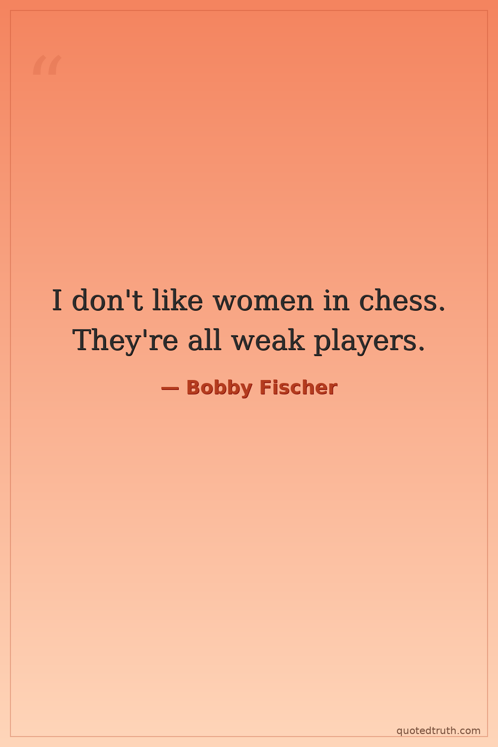 I don't like women in chess. They're all weak players.