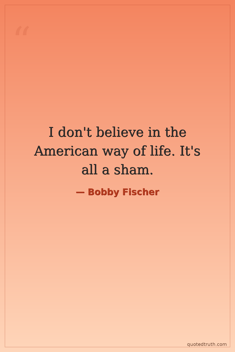 I don't believe in the American way of life. It's all a sham.