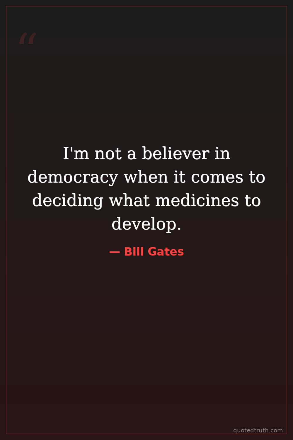 I'm not a believer in democracy when it comes to deciding what medicines to develop.